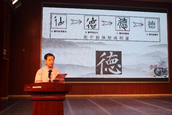 在启动仪式上,学院党委书记刘立浩首先代表学院致辞。刘立浩书记以“德”字的演变过程向大家剖析讲解“德”的深刻内涵,鼓励同学们遵循“德”的准则,直视“所行之路”的方向,遵循本性和本心,恪守道德规范,培育美好品质,成为德才兼备的高素质人才。刘立浩书记指出,“中文之光•德育讲坛”的启动,以我院独特的文化优势、文化资源、文化形式面向广大师生开展德育教育,这是我们贯彻落实习近平总书记在全国思想政治教育工作会议所指出的“以文化人,以文育人”重要论述的实践。刘立浩书记还指出,德育教育一直是我院工作的重中之重,是首要工作,而文学是德育教育工作最好的教材。他还强调,我院师生应以积极的视角推动“中文之光•德育论坛”建设,以积极饱满的态度,投入到德育讲坛的活动中去,学知识,添涵养,育德行。