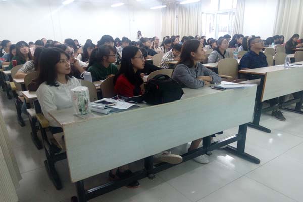 本次活动由全体党员和部分入党积极分子以说课的形式展示党支部成员深入学习十九大精神的成果。各位党员和入党积极分子从一个细微的关注点入手,结合自身的实际,表达了自身对十九大精神学习的思考。陈小楠以“不忘初心,方得始终”为讲课主题,从十九大简述、十九大的主题、十九大报告高频词汇三个方面以词云图的形式展示了十九大报告中出现的“发展、人民、建设”三个高频词汇,从语言分析角度总结了这三个高频词汇说明了国家的建设和发展是为了人民。邓千叶以板书的形式强调课堂重点内容“三个必须、四个伟大”,讲解了实现中国伟大梦想的必经之路,阐述了新时代社会主要矛盾的变化情况。活动中多名党员选用了十九大报告中的关键词从不同的方面向大家解读了十九大报告的内容,分享了学习心得。活动展现了党员引领入党积极分子主动学习党的最新理论成果的优良学风和支部成员向上的精神状态。