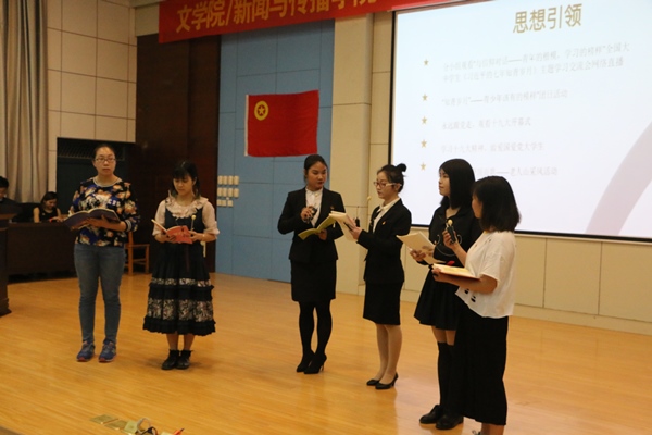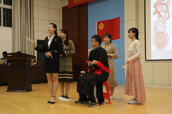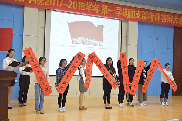 “想和你一起去远方印度尼西亚,还有韩国和泰国赏异国风情,传承优秀的文化,不忘最初的心愿,让我们共同搭建汉语桥”,2016级汉语国际教育团支部通过改编小虎队演唱的歌曲《爱》的歌词,生动地展现团支部的工作特色;2017级汉语言文学第三团支部通过双人相声的形式,绘声绘色地展示了团支部开展的各项活动;2015级汉语言文学第四团支部改编经典《红楼梦》中的部分情节,别出心裁地将团支部的特色融入到了情景剧中,令人耳目一新。各团支部精神准备的形式多样的汇报,展现了支部的风采和青年学子奋发向上的昂扬精神状态。