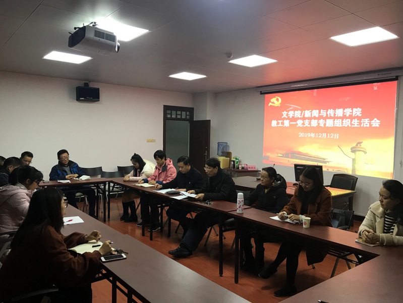 1212日晚上,我院教工第一党支部全体党员在育才校区第二文科楼北楼810会议室召开专题组织生活会。会议共分为三个部分,一是支部负责人对本支部开展“不忘初心、牢记使命”主题教育学习活动进行总结,二是召开民主生活会,对支部生活进行评议,开展党员批评和自我批评交流教育活动;三是对全体党员进行评议。