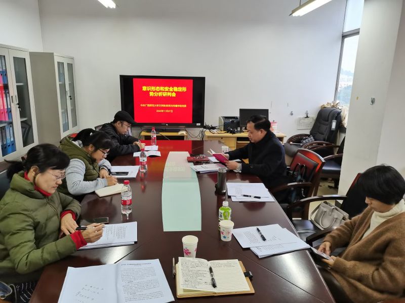 11月27日下午,学院党委在育才校区文二楼811会议室召开意识形态和安全稳定形势分析研判会,党委书记刘立浩、专职组织员董颖、教工各支部支委参加了本次会议。会议由专职组织员董颖主持。