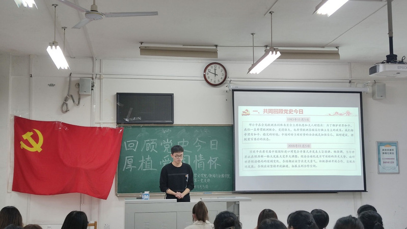 为继续深入开展党史学习教育,弘扬爱国主义精神,11月5日下午,学生第一党支部于文二区教学楼106教室开展了以“回顾党史今日,厚植爱国情怀”为主题的党日活动。此次活动由党支部支委浦仕金主持,支部全体党员积极参与了本次活动。