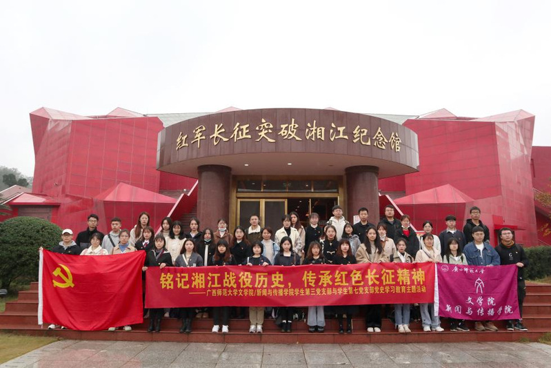 文学院/新闻与传播学院学生第三党支部与学生第七党支部于2021年11月20日在广西桂林兴安红军长征突破湘江战役纪念馆举行了“铭记湘江战役历史,传承红色长征精神”的党史学习教育主题活动,共44名同志参加。