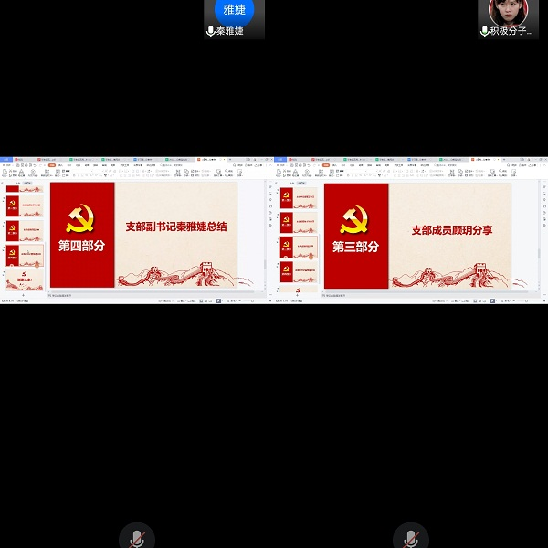 为促进支部成员活用“学习强国”激发学习力量,3月9日晚,学生第五党支部利用腾讯会议平台召开支部“学习强国”经验分享会,本次会议由支部副书记秦雅婕主持,学生第五党支部全体党员和积极分子参加。
