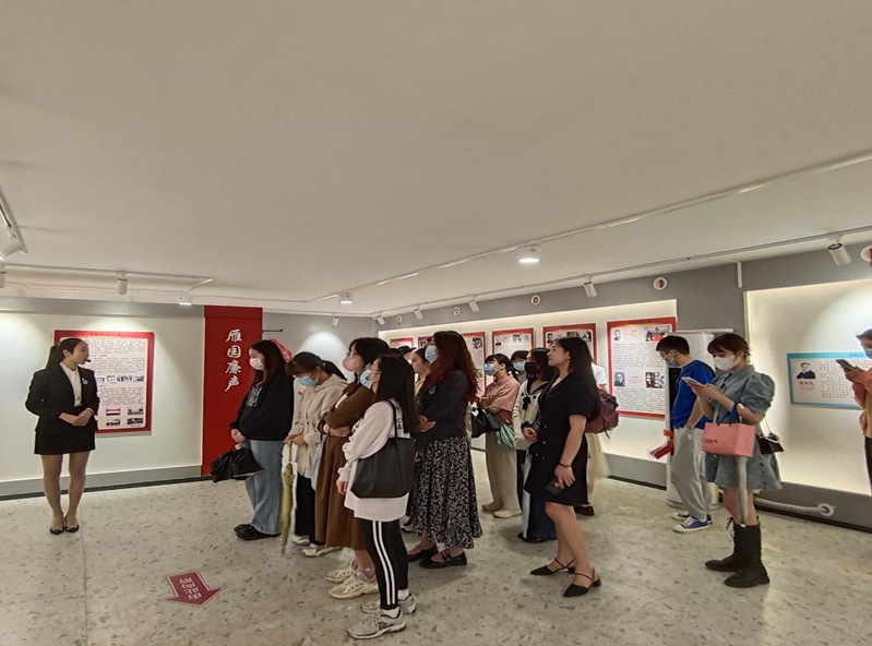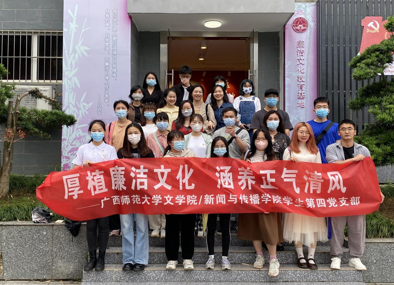 接着,支部成员来到了孔子广场左侧的思廉教育基地。思廉基地分为了八桂古代廉吏、勤廉榜样、雁园廉声、以案为戒等板块的学习。在古代的八桂有马革裹尸、清白还珠的马援;始倡文教、庭诰显声的颜延之;抗衡强权、为民除害的周渭。在勤廉榜样中分为了以下几个部分,革命领袖如廉洁为民的光辉典范周恩来;革命先烈如廉洁自律的模范毛泽民;拳拳报国心、姓钱不爱钱的科学家钱学森;不老斩疫魔的抗疫英雄钟南山……在雁园廉声中,跟随讲解员的步伐,支部成员一起简单回顾了学校从师专到师大的风雨路程,其中不乏红色廉洁模范事迹,如师专首任校长杨东莼先生反专制扬民主的事迹。最后通过反面教材为支部成员学习廉洁文化、感悟高尚精神的实践活动画上圆满句号。