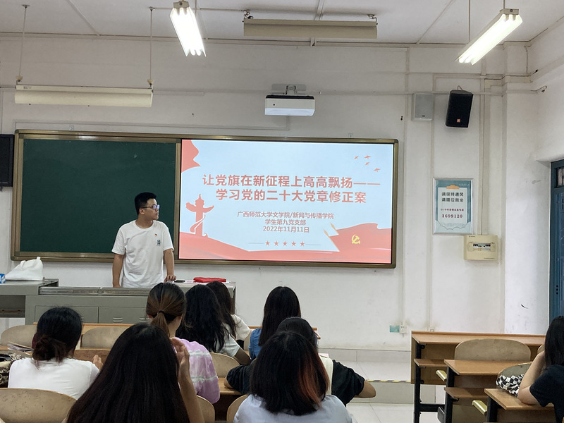 为进一步深入学习贯彻党的二十大精神,深化党员对党章的理解,增强党员党性修养,11月11日下午,学生第九党支部在文二区215教室举行《中国共产党章程(修正案)》专题学习会。副书记陈佰乐同志主持会议并领学,支部书记赵苗子同志、支部全体党员参加本次会议。