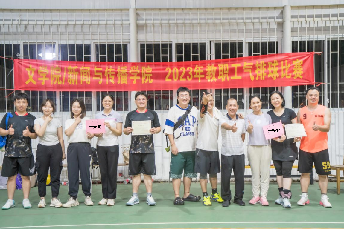 结合本学期学院及学校的各项工作安排,经学院领导班子及学院工会的反复研究,最后商定,本次比赛时间选择定在了国庆长假最后一天的下午。赛事一经发布,便得到了大家的踊跃报名。10月6日下午四点,育才校区气排球棚里聚集了学院近80名教职工欢快的笑脸。学院共有包括文艺学&中国现当代文学联队、中国古代文学队、语言学及应用语言学队、汉语言文字学队、秘书学队、新闻学&网络与新媒体联队、行政1队、行政2队、学工队等共9支队伍参加了本次比赛的角逐。比赛设置了一、二、三等三个奖项。经过小组单循环赛及第二轮的决赛,最后,学工队和文艺学&中国现当代文学联队斩获一等奖,行政1队、语言学与应用语言学队获得二等奖,新闻学&网络与新媒体联队、行政2队、中国古代文学队、汉语言文字学队、秘书学队获得三等奖。