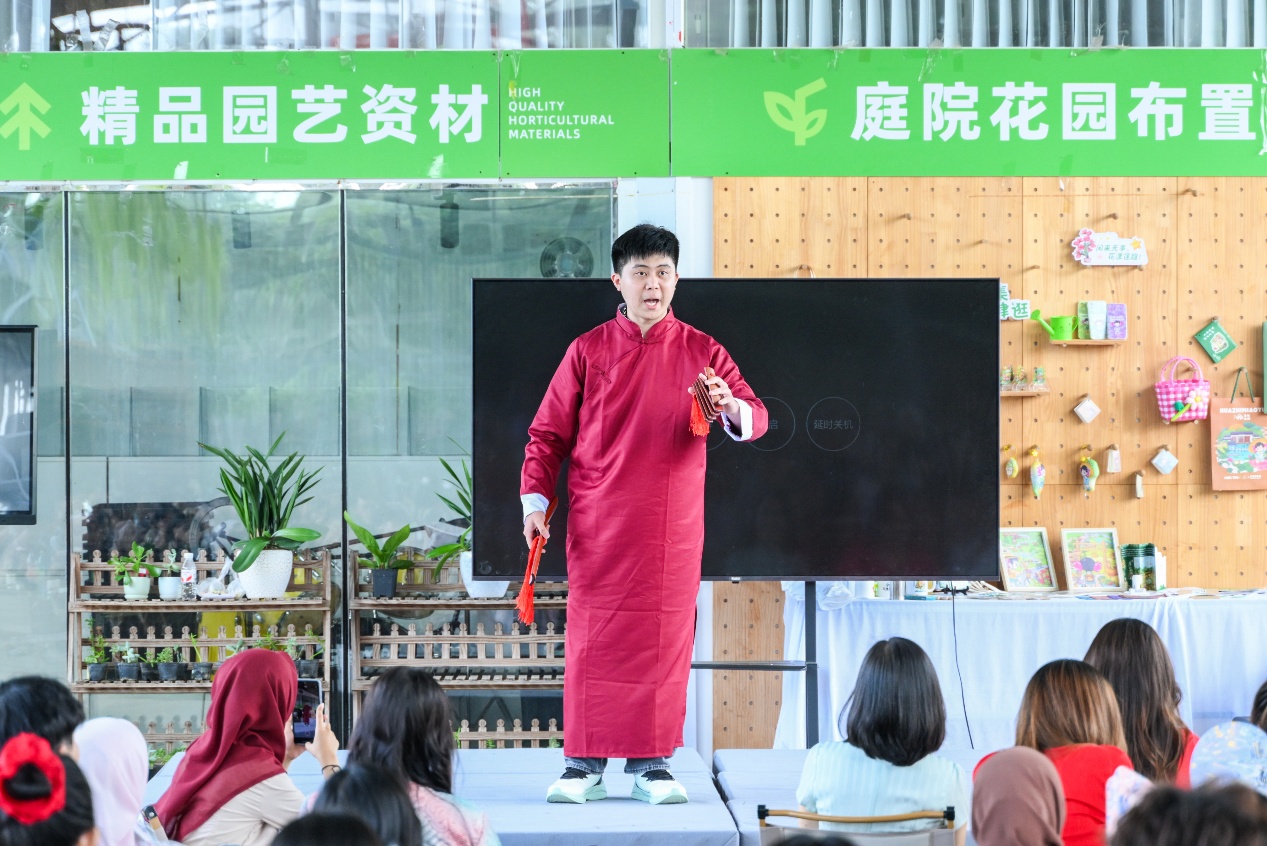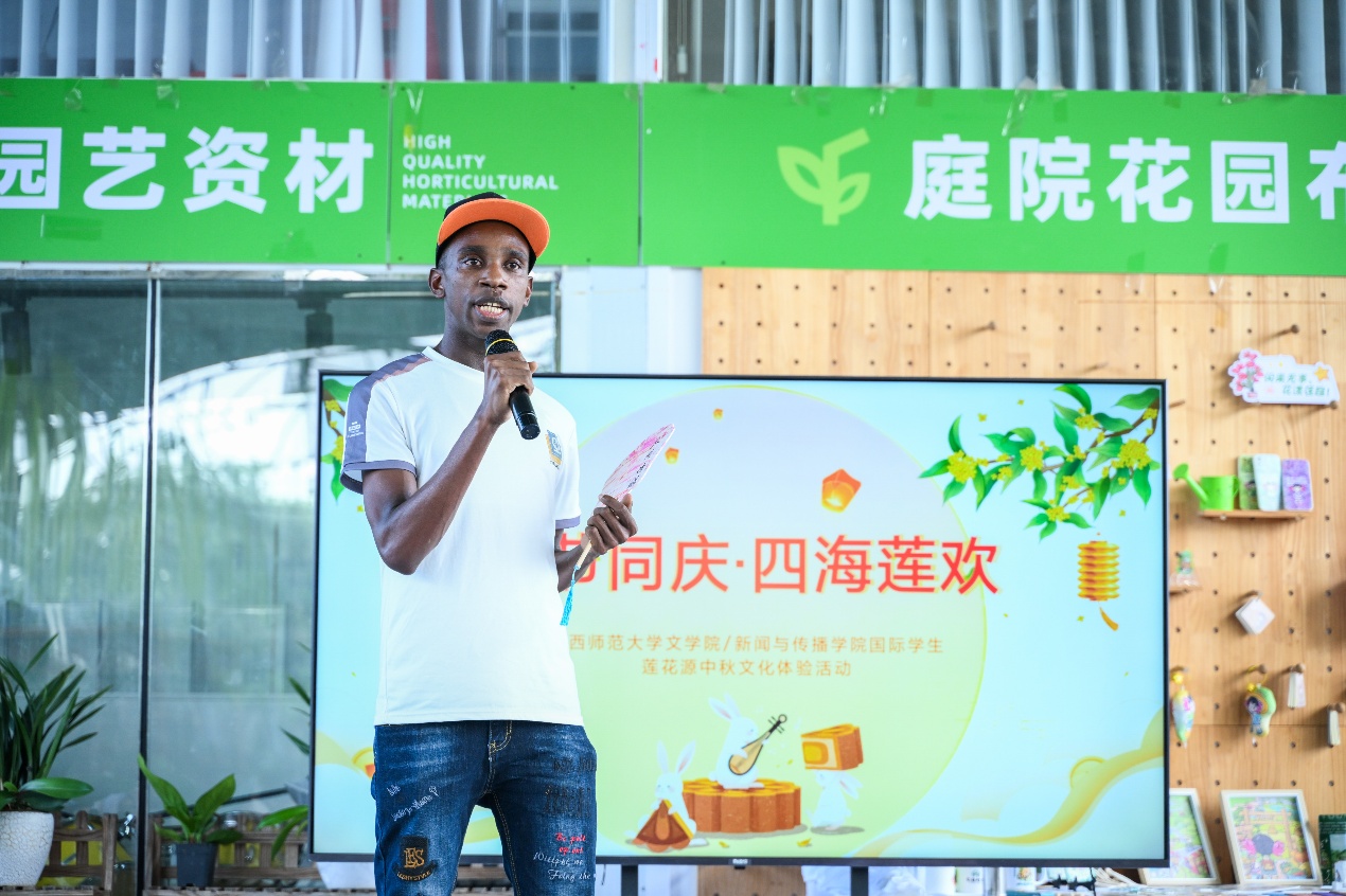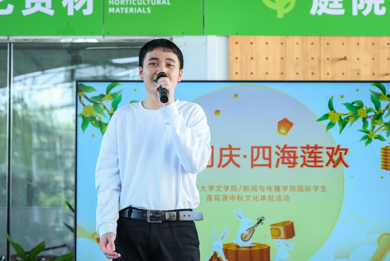 活动伊始,国际生们在莲花源生态田园景区内聆听了关于本地华侨历史的简短介绍,随后体验非遗手工艺品制作。国际生们在师傅的悉心指导下,完成了做手工月饼活动和非遗漂流漆扇制作。午后,中外学子们轮番登场,献上了精彩纷呈的才艺表演。活动最后,师生们在景区绚烂的花海之中,在桂林特有的喀斯特地貌背景下,合影留念。