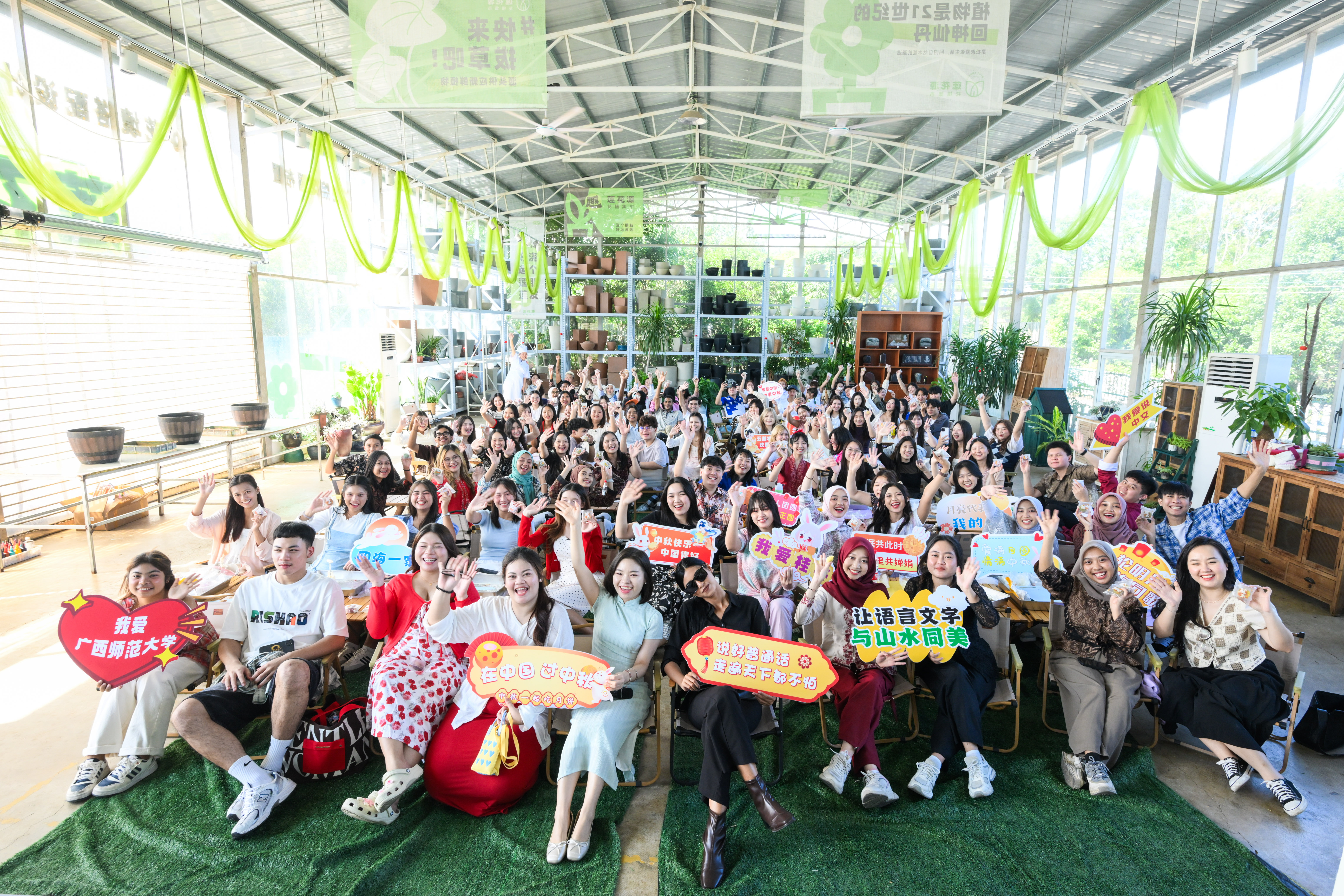 10月7日,广西师范大学文学院/新闻与传播学院、国家语言文字推广基地(广西师范大学)共同组织开展国际学生莲花源文化体验活动。来自泰国宋卡王子大学、泰国清迈皇家大学、泰国庄甲盛皇家大学、泰国庄鹏皇家大学、印尼玛琅国立大学、印尼彼得拉基督教大学、印尼慈育大学7所高校百余名国际交换生参加了活动。