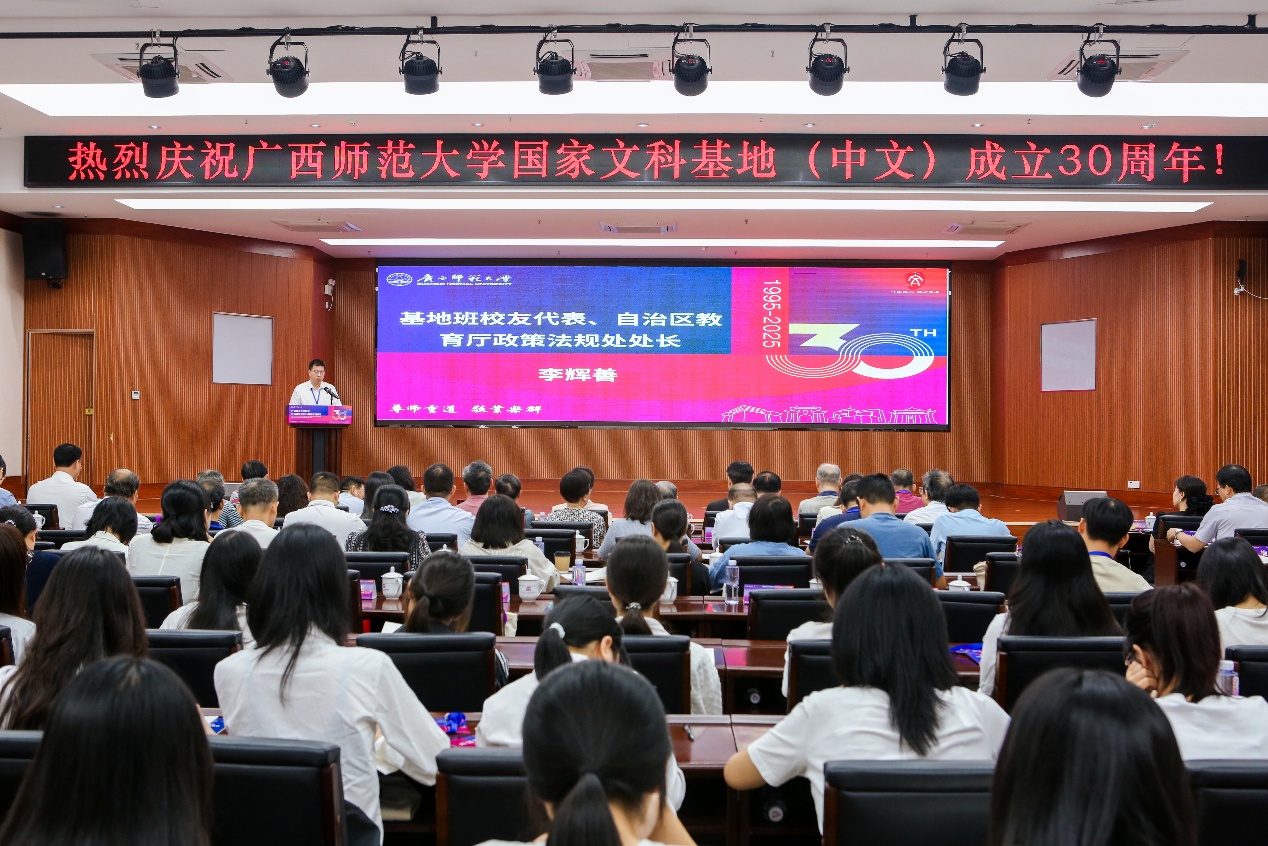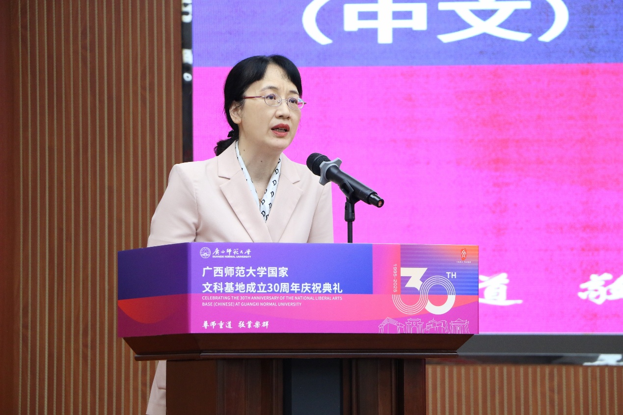 10月18日,广西师范大学国家文科基地(中文)成立30周年庆祝典礼暨拔尖人才培养研讨会在育才校区国教楼201报告厅举办。副校长黄晓娟出席典礼并致辞。学校原党委书记黄介山,学校原校长张葆全,广西文艺评论家协会主席、广西文联原副主席、《南方文坛》原主编张燕玲,中山大学中国语言文学系副系主任张均,陕西师范大学文学院副院长李胜振以及校友和在校学生代表等出席活动。典礼由学院党委书记邓志平主持。