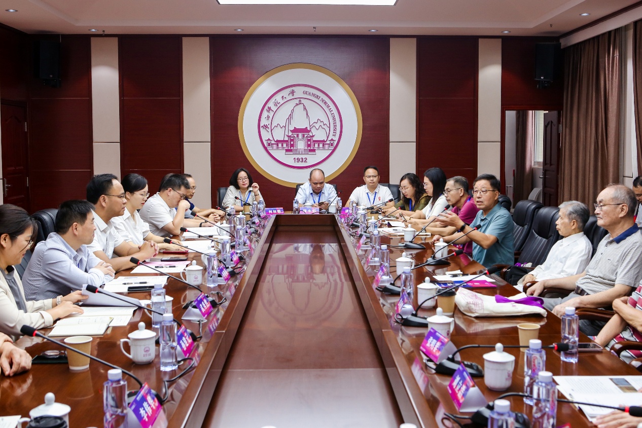 研讨会分为聚力对谈和自由交流两个环节。张葆全、黄介山,学院老教授胡大雷、张利群、孙建元,广西师范大学附属外国语学校党委书记王忠英、自治区人力资源和社会保障厅职业能力建设处副处长武秀然、桂林旅游学院科研处处长王亚娟、佛山石小实验学校副校长潘爱明等多位在教育领域耕耘多年的专家、校友,回顾了国家文科基地创立的奋斗历史细节,围绕在“新文科”的浪潮下,如何更有效地培养时代所需的拔尖人才的核心课题,从不同维度探讨拔尖人才培养的理念、挑战、路径和方法。