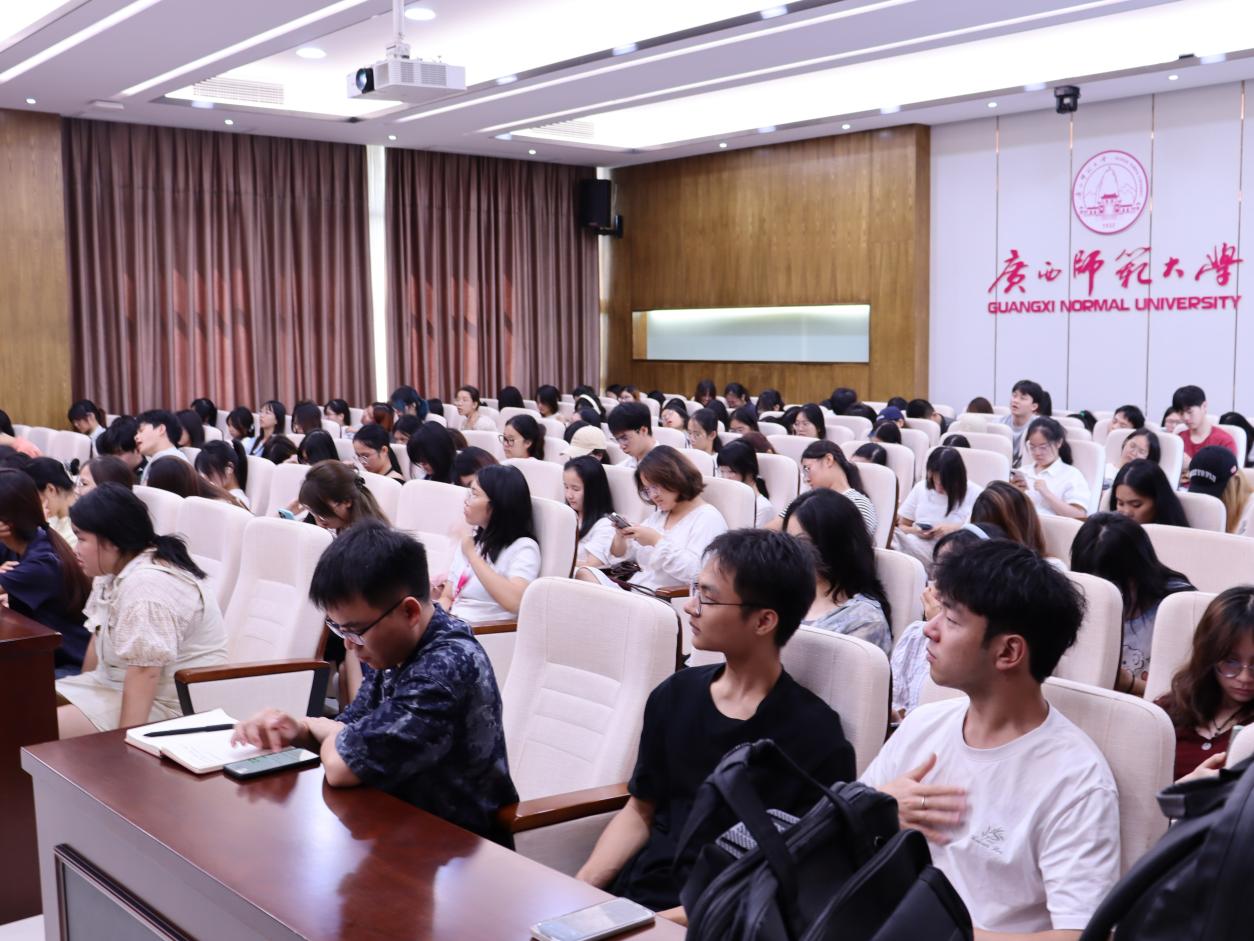 2025年10月17日,广西师范大学文学院/新闻与传播学院202508期“中文之光•文科基地拔尖讲堂”在我校雁山校区行政南楼第五会议室开讲。本次讲座特邀广西日报社编委、教育部主任魏恒主讲,主题为“熟悉的陌生感:新闻报道中的形式主义”。讲座由谢奋老师主持,2024级新闻学、网络与新媒体等130多名学生到场聆听。