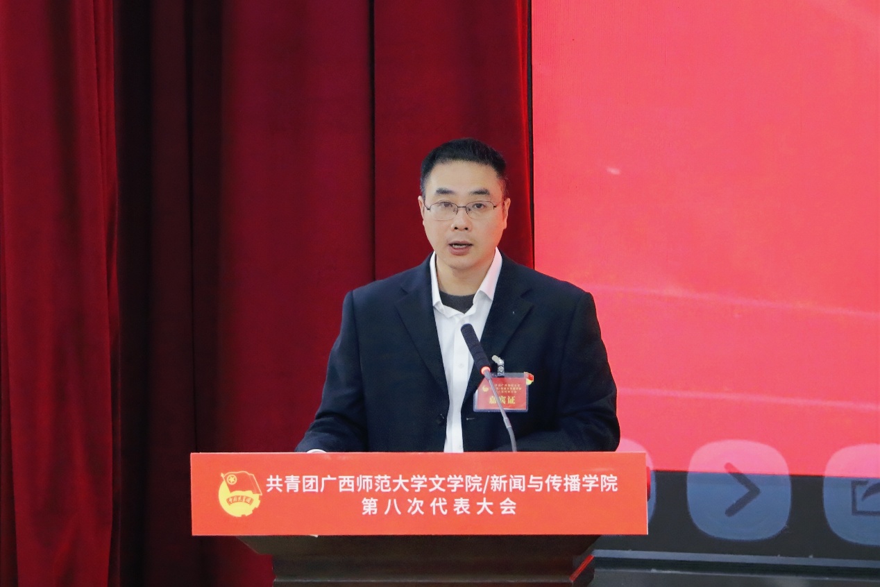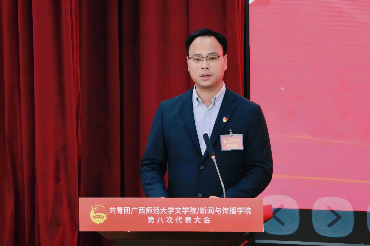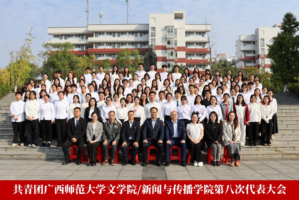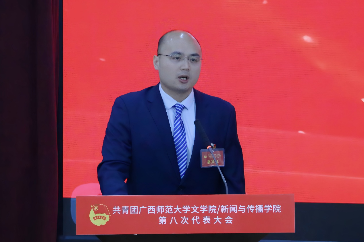 10月26日,共青团广西师范大学文学院/新闻与传播学院第八次代表大会在雁山校区文二119学术报告厅顺利召开。学院党委书记邓志平、校团委副书记韦斯门、学院党委副书记谭智奇、学院团委书记陶柳洁等出席,各年级辅导员、兄弟学院团委代表应邀参会,来自全院各团支部的115名正式代表参会。