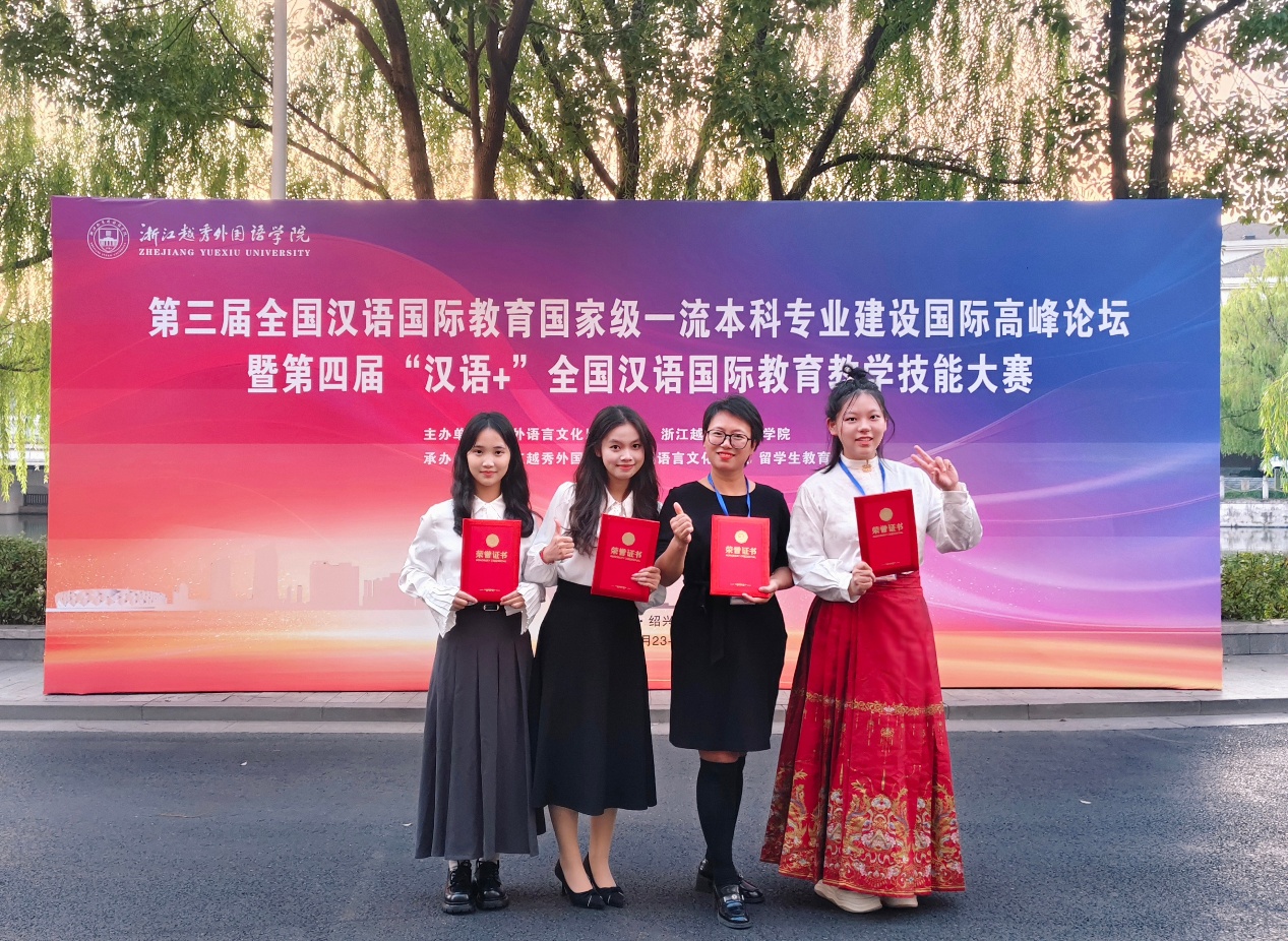为服务国家战略和文明互鉴,推动全国国际中文教育专业一流学科建设及教育教学水平的提升,加强全国高校之间的专业交流与合作,由国家一级学会中外语言文化比较学会和浙江越秀外国语学院联合主办、浙江越秀外国语学院中国语言文化学院、留学生教育学院承办的第三届全国汉语国际教育国家级一流本科专业建设高峰论坛暨第四届“汉语+”全国汉语国际教育教学技能大赛于2025年10月23-25日在浙江越秀外国语学院成功举办。来自全国16个省市,50所高校的专家学者和110名中外学生分别参加了此次论坛和大赛。