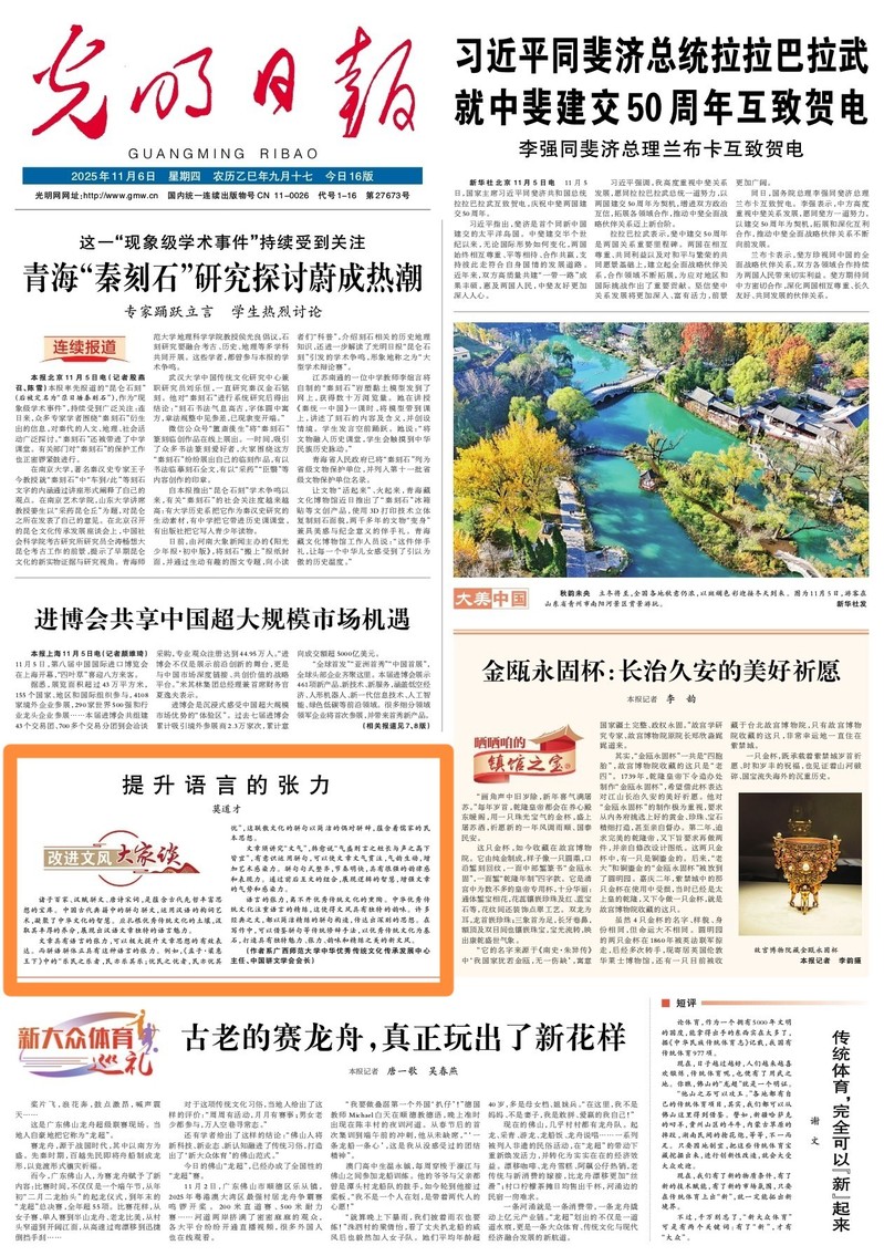 《光明日报》11月6日头版《改进文风大家谈专栏》刊发我院莫道才教授的文章《提升语言的张力》。