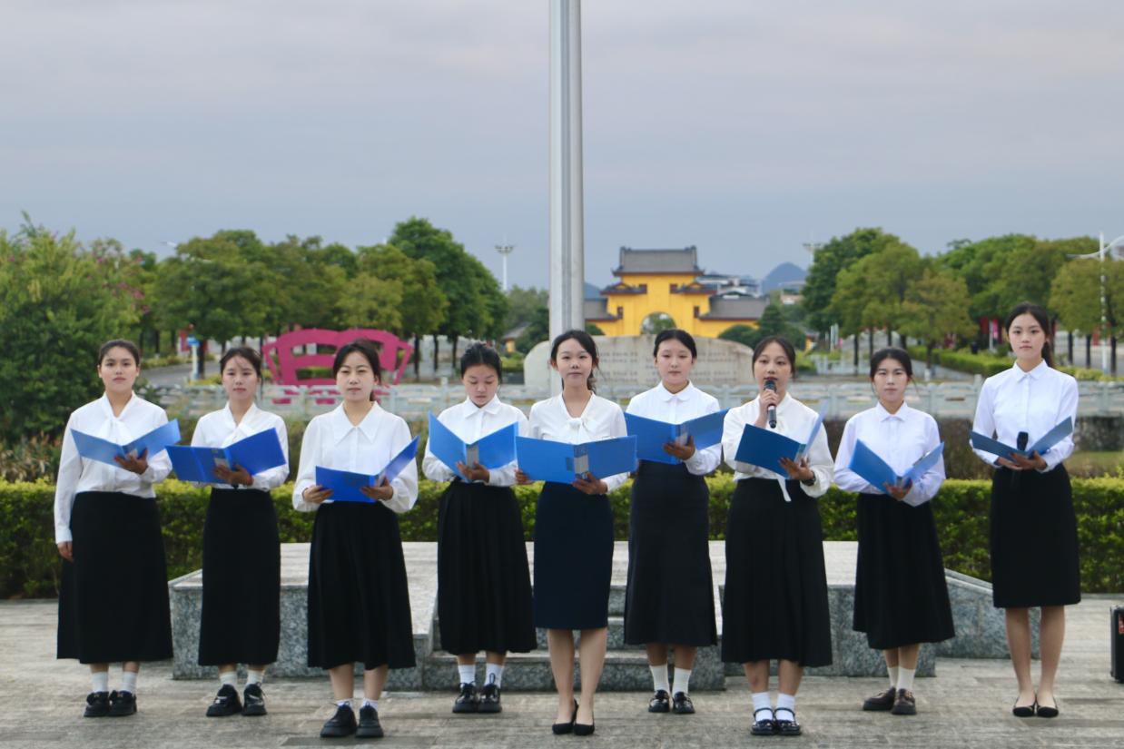 礼毕,谭智奇副书记以“纪念抗日战争胜利80周年”为题致辞。他指出,桂林在抗日战争时期作为重要战场,为抗战胜利作出了不可磨灭的贡献,同学们应以新时代青年的使命担当,深耕专业、践行初心,在日常生活中落实行动,争当承担国家重任的栋梁。