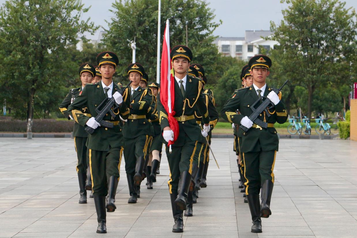 仪式开始,国旗护卫队身着整齐制服,迈着铿锵有力的步伐,护送国旗入场。随着激昂的国歌奏响,在场师生肃立行注目礼,齐声高唱国歌。