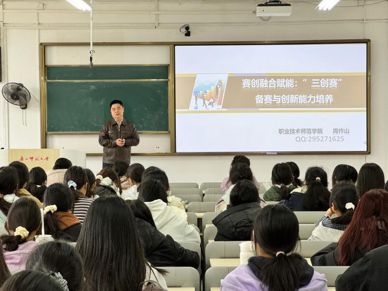 为帮助2025级新生明晰“三创赛”备赛方向,提升创新实践能力,11月18日上午,我院邀请职业技术师范学院周祚山老师为2025级学生举办《赛创融合赋能:“三创赛”备赛与创新能力培养》专题讲座。