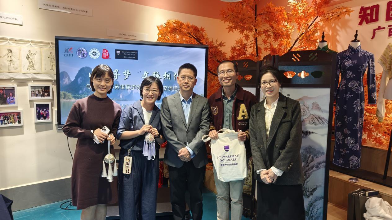 2025年11月17日下午,清华大学苏世民书院师生代表团一行到访我院,开展了一场以“山水寻梦·文脉相传”为主题的文化交流活动。来自8个国家的20名学生与我校师生齐聚一堂,在沉浸式体验与互动中共话文化传承,促进了中外青年之间的深度对话。