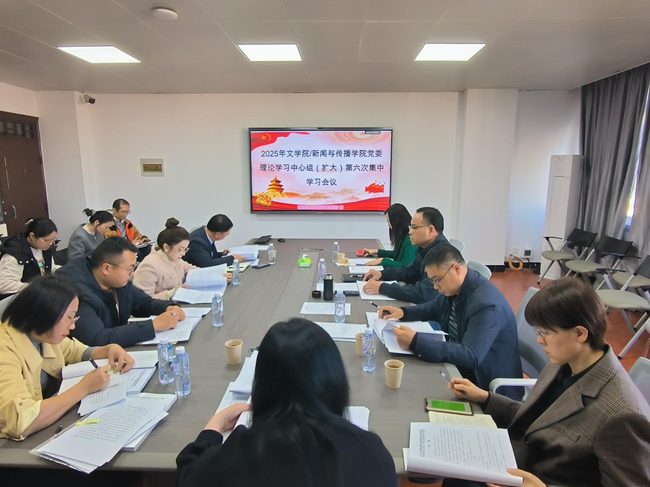 为深入学习领会党的二十届四中全会精神、习近平经济思想及习近平总书记关于统计工作的重要讲话和重要指示批示精神,凝聚接续奋斗共识,激发攻坚克难动力,11 月 28 日,文学院/新闻与传播学院在育才校区第二文科楼 806 会议室召开党委理论学习中心组(扩大)第六次集中学习会议。学院党委委员、领导班子成员、纪委委员、分工会主席、全体辅导员、党支部书记、分团委书记、学工办主任及专职组织员参加会议,会议由学院党委书记邓志平主持。