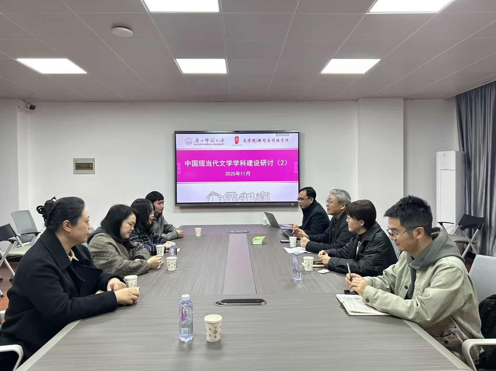 2025年11月26日晚,陕西师范大学资深教授赵学勇教授应邀莅临我院,就中国现当代文学学科建设进行专题研讨与指导,中国现当代文学教研室教师及相关学科教师参加了此次座谈。