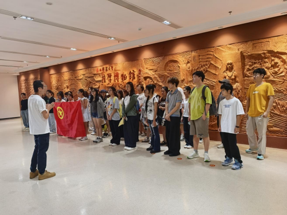 全程参与桂学博物馆建设的辅导员李逊老师,为部分批次新生进行了深度讲解。他从亲历者的角度,生动分享了博物馆建设背后的故事与场馆的建设理念,为同学们理解广西文化的深厚底蕴打开了一扇独特的窗口。这种来自“建设者”的解读,让历史的呈现变得更加真实可感,引发了同学们的浓厚兴趣和积极提问。
