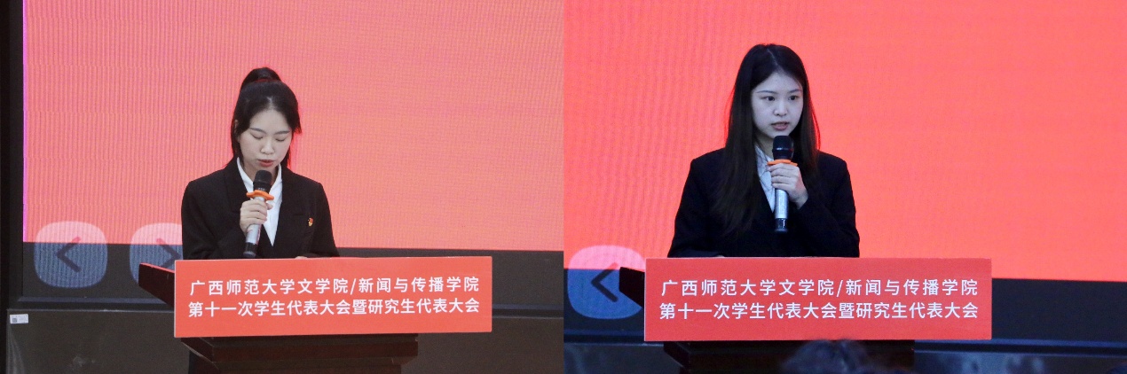 学院第十届学生会主席团成员和研究生会代表分别做工作报告,全面总结过去一年的工作成果,明确未来一年在思想引领、组织建设、权益服务、校园文化等方面的工作规划,为学生组织的发展明确了清晰的奋斗目标。大会审议通过了《广西师范大学文学院/新闻与传播学院学生会章程(修正案草案)》等文件,民主选举产生了学院第十一届学生会和研究生会主席团成员,以及大会常任代表。顺利完成各项议程和任务后,大会在全场齐声高唱校歌《育才之歌》中落下帷幕。
