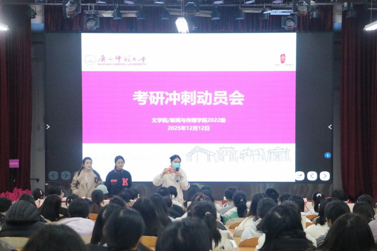 12月12日上午,学院在雁山校区文二119学术报告厅召开考研冲刺动员会,本科2022级辅导员和2026届全体考研学生参加此次会议。