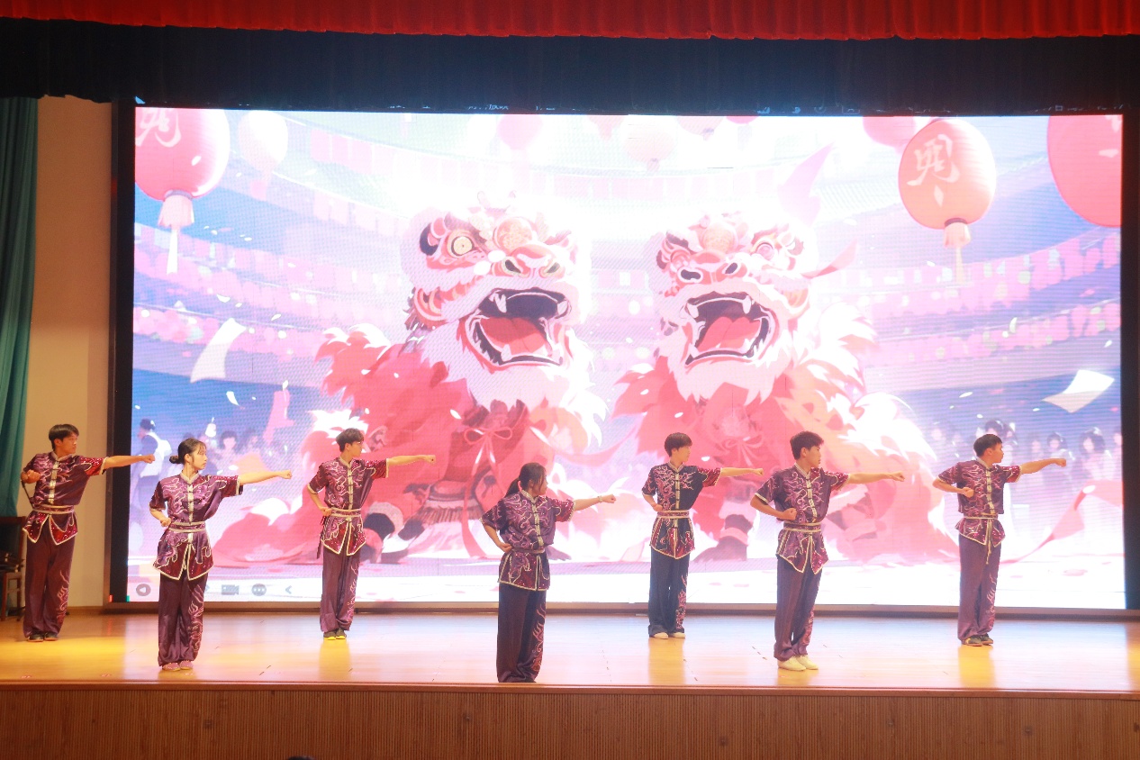 晚会节目精彩纷呈。凌梓萱等同学的古筝演奏《兰亭序》婉转悠扬,与现场“天朗气清,惠风和畅”书法作品相映成趣;印尼留学生陈家豪的快板《踢皮球》、贺洲洲等同学的葫芦丝演奏各具特色。晚会在2025级国际文化教育学院全体学生合唱《我相信》中落下帷幕。
