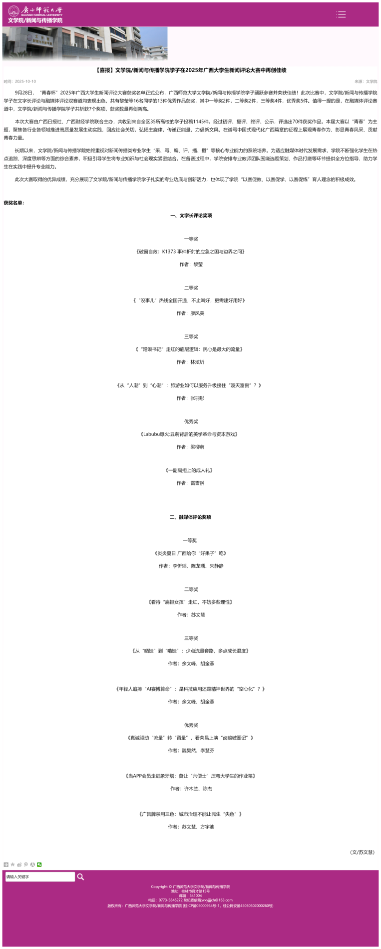 文学院_新闻与传播学院学子在2025年广西大学生新闻评论大赛中再创佳绩