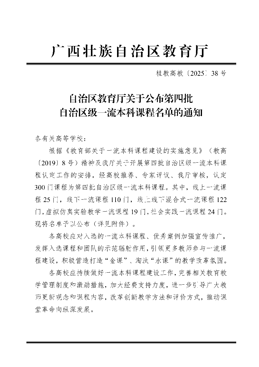 第四批自治区级一流本科课程名单