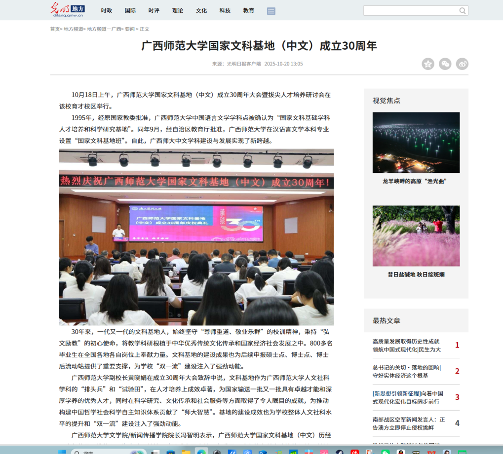 光明日报:广西师范大学国家文科基地(中文)成立30周年