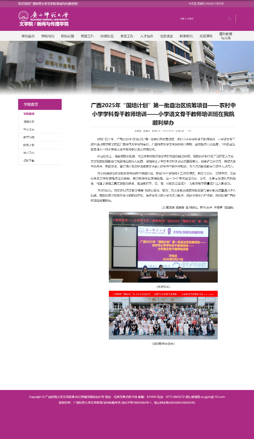 广西2025年“国培计划”第一批自治区统筹项目——农村中小学学科骨干教师培训——小学语文骨干教师培训