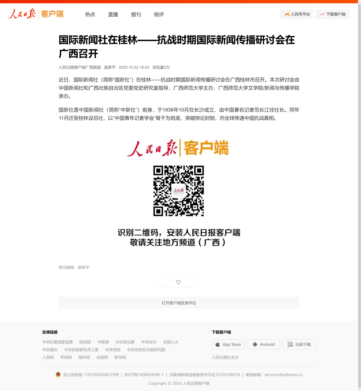 人民日报:国际新闻社在桂林——抗战时期国际新闻传播研讨会在广西召开