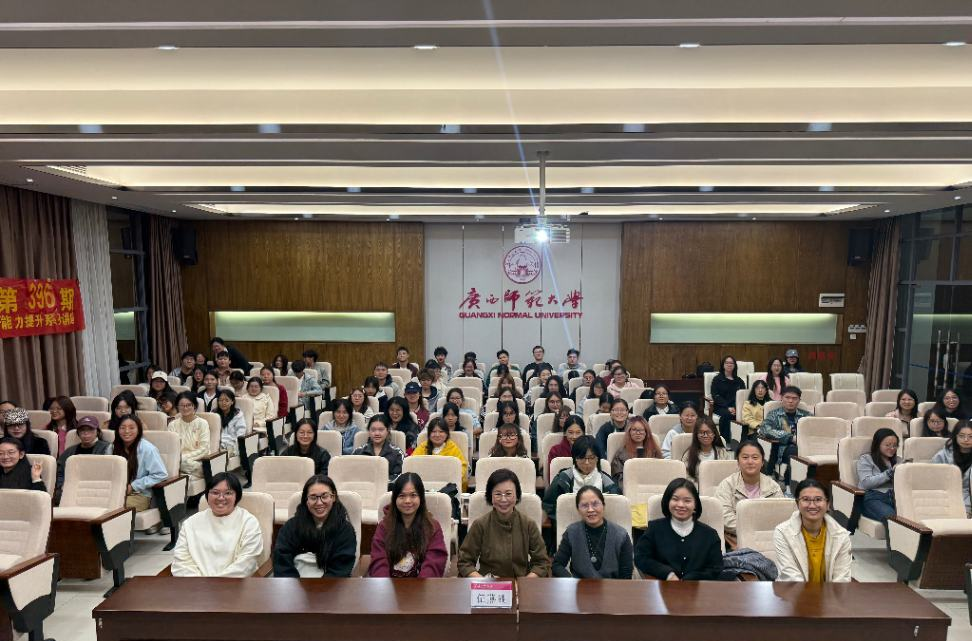 11月12日晚,广西师范大学文学院/新闻与传播学院、广西师范大学国家语言文字推广基地在雁山校区举行“数字智能时代的跨文化文学教学——多元社会中的华文教育再想象”(中文之光研究生讲坛第396期)专题讲座。马来西亚新纪元大学学院文学院院长、博士生导师伍燕翎教授担任主讲嘉宾。