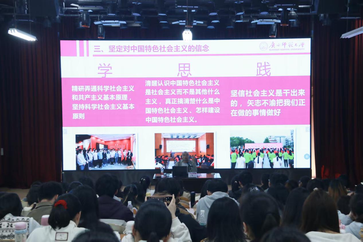 本次课程以“生涯规划彩虹桥”为切入点,围绕“筑牢理想信念根基”展开讲授。校团委副书记韦斯门结合自身经历与党的发展历程,深入浅出地阐释了坚定理想信念的必要性,立足当下世界发展格局,强调“信念如磐”的时代意义。他还援引我校“尊师重道,敬业乐群”的校训,勉励青年要扣好理想信念的“第一粒扣子”,以百分之百的敬业奉献践行初心使命。
