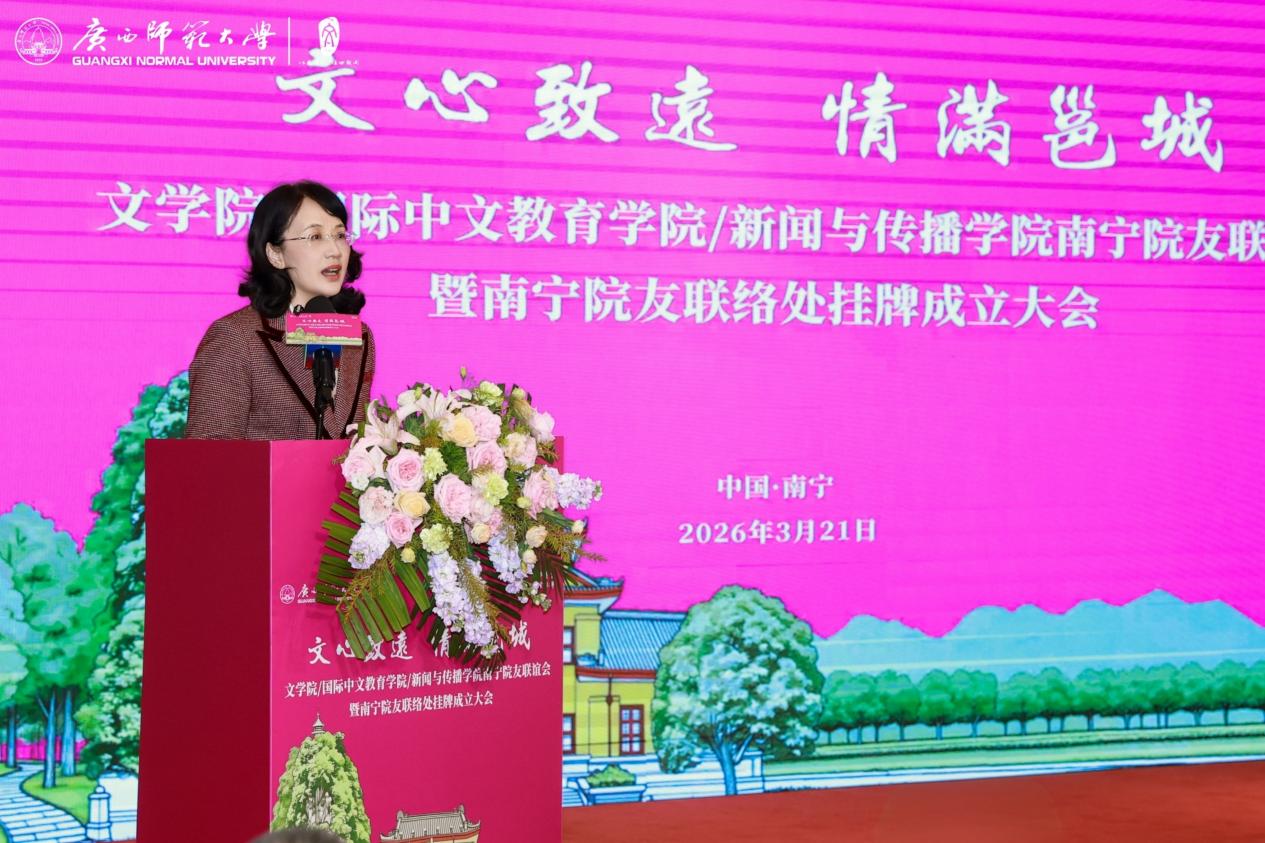 广西师范大学校友会文学院/国际中文教育学院/新闻与传播学院南宁院友联络处的成立,为学院在南宁的广大院友搭建了凝心聚力、共谋发展的崭新平台,更成为联结母校文脉与邕城发展的重要纽带。