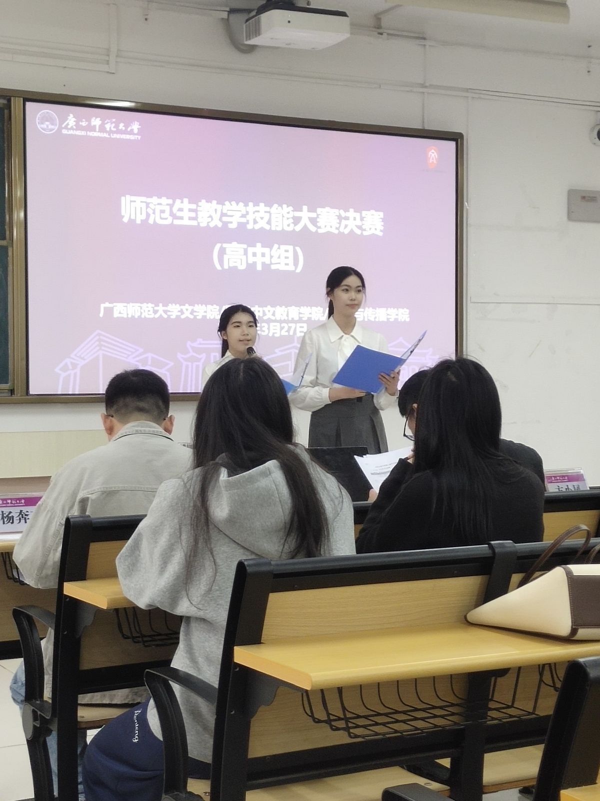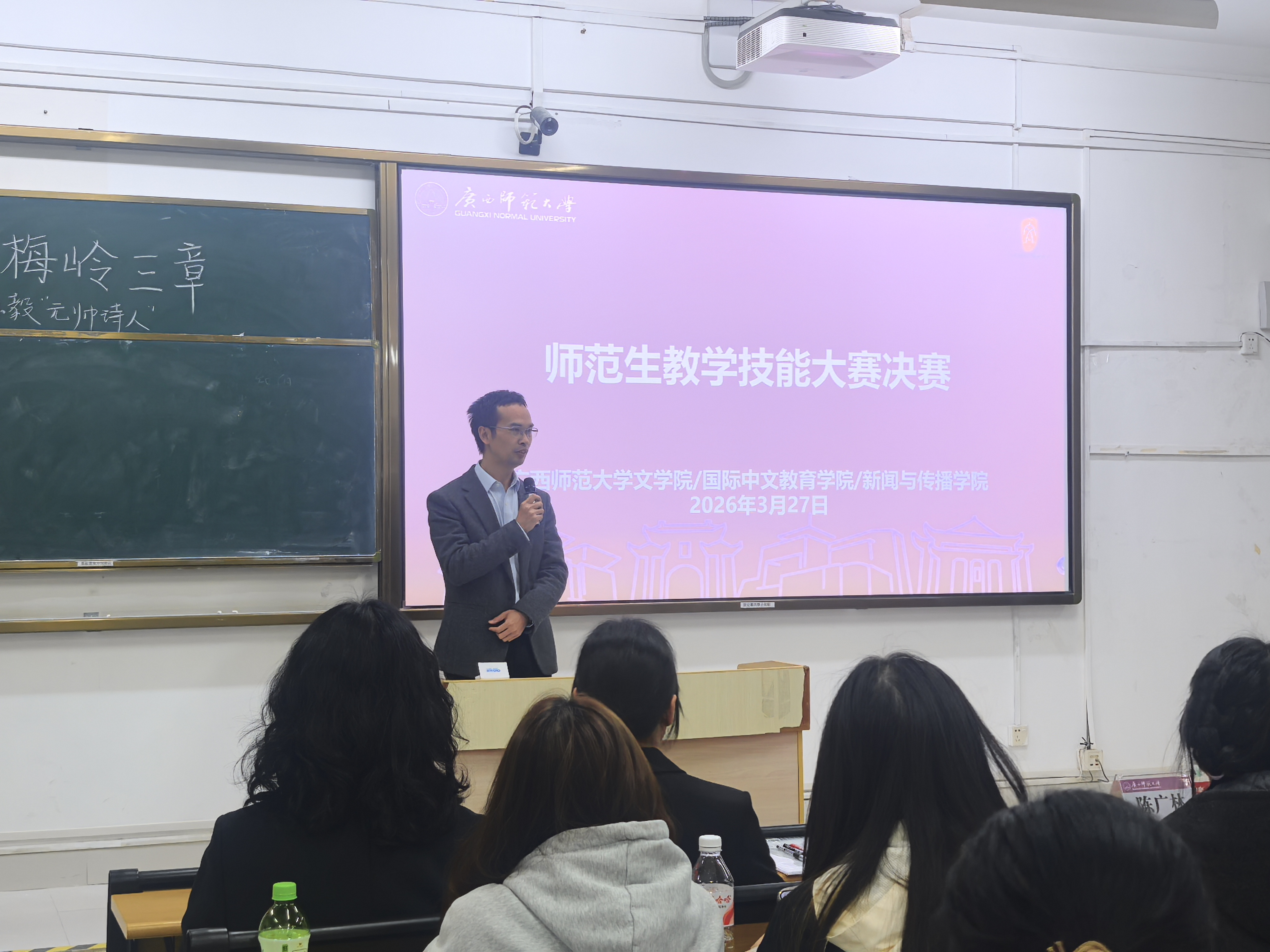 为夯实师范生教学实践根基,搭建技能锤炼与风采展示的优质平台,助力参赛学子高效备赛、提升竞技水平。3月27日,学院在文一教学区209、210教室举办2026年师范生教学技能大赛决赛。蓝善康副院长,方小凤、陈广林、唐子江、李林原、张兴华、杨奔奔等老师到场指导。