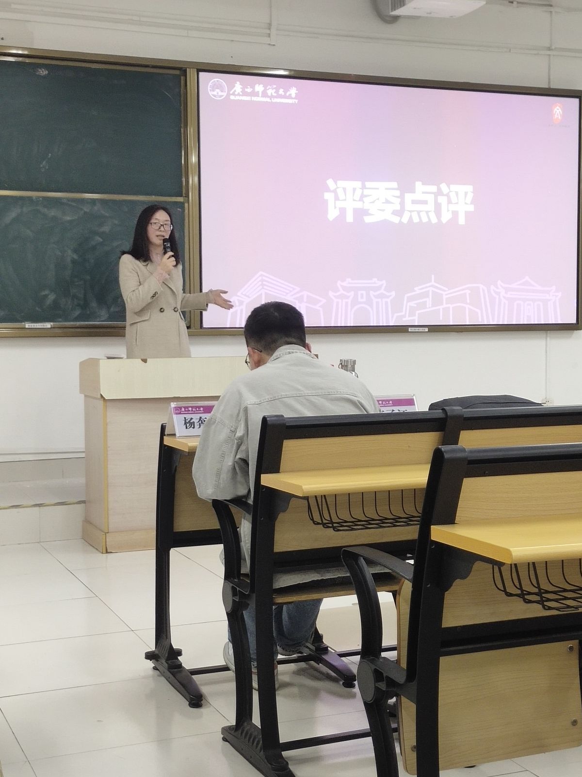 评委教师围绕教学内容、课件制作、语言表达、板书设计、教学方法及教态等方面,对参赛选手进行全面细致点评,既肯定优点,也针对性地提出改进建议,鼓励同学们精进教学技能、提升教学水平,并寄语选手在今后教学实践中持续打磨、再创佳绩。