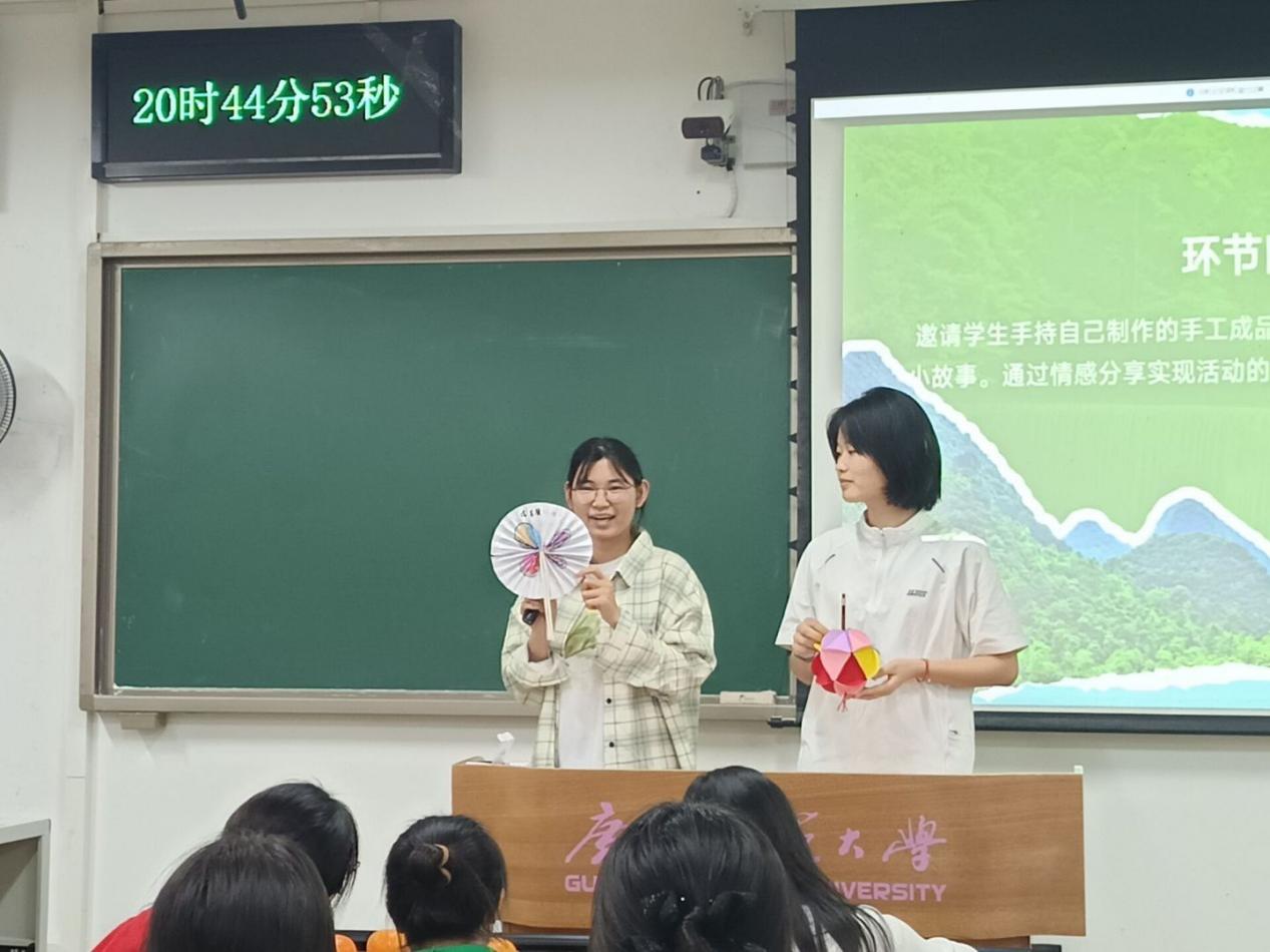 本次活动以“理论入心”和“民俗体验”为主线,实现了思想引领与文化浸润的深度融合。在理论层面,学院教师依托习近平文化思想等课程,结合广西多民族交融共生的历史与现实,深入解读中华民族多元一体格局及“文化自信”的深刻内涵。辅导员团队则围绕桂林八路军办事处的统战历史与新时代乡村振兴故事进行专题宣讲,各班级支部通过理论分享、案例研讨、视频观摩等多元形式开展主题学习,引导学子深刻理解“像石榴籽一样紧紧抱在一起”的团结精神。
