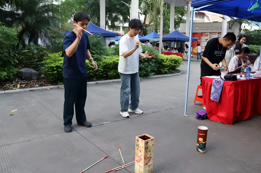 “民族文化体验营”活动现场学生积极参与投壶