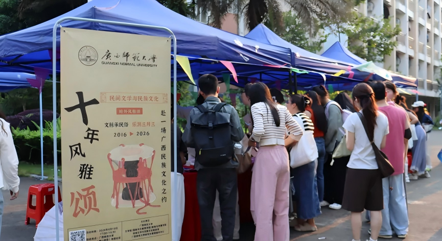 广西三月三传统节日期间,文学院/国际中文教育学院/新闻与传播学院举办了系列融合理论深学与民俗体验的特色活动,将思政课堂延伸至山水之间,以生动实践铸牢中华民族共同体意识。