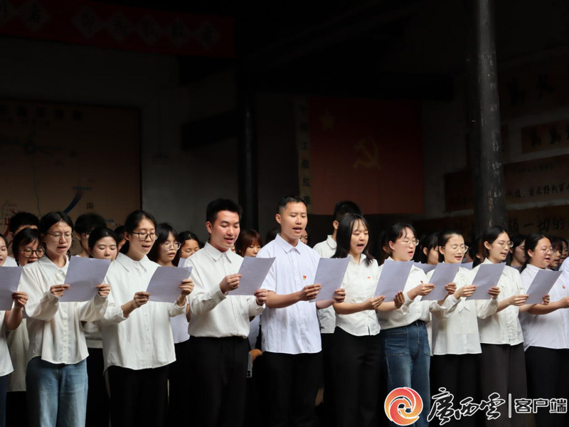 “湘江战役就像在昨日,枪声仿佛还在耳边……”4月12日,桂林兴安县界首渡江遗址公园内,近百名广西师范大学师生齐声朗诵《你们的名字叫红军》,铿锵之声在江畔回荡。