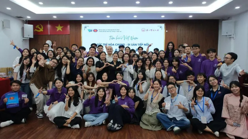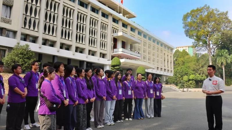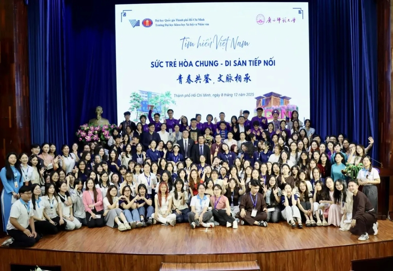 2025年12月8日至13日,“青春共鉴·文脉相承”2025年中越人文交流年青年友好周活动在越南胡志明市举行。作为全年唯一以单独学校名义开展系列深度交流的高校,广西师范大学携手越南胡志明市国家大学下属人文社科大学,汇聚60余名中越青年代表,通过红色研学、主题论坛、非遗互动等多元活动,搭建起民间人文交流的坚实桥梁,为中越命运共同体建设注入青春动能,成为中越人文交流年中的典范之作。我院2022级汉语言文学院专业本科生蔡开彬、贾灵羽,2022级网络与新媒体专业本科生李忻瑶,2025级语言及应用语言学专业硕士研究生李柱梅参加交流活动。蔡开彬在现场为中越青年开展“望道微课”海外首讲,回溯中越革命历程中的互助情谊,让红色基因在青年视角下焕发新活力。