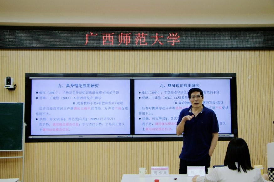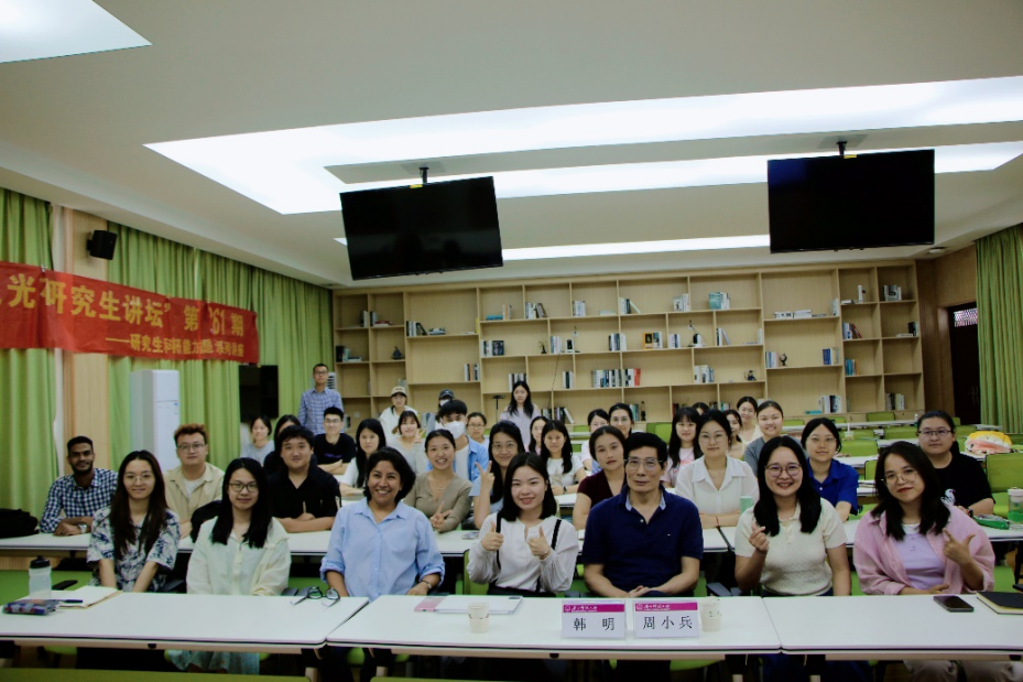 4月29日,我院第361期(第三场)“中文之光研究生讲坛——研究生科研能力提升系列讲座”有幸邀请到北京语言大学教授,世界汉语教学学会学术指导委员会成员周小兵教授为师生带来题为“理论方法与研究思路”的讲座。讲座由我院国际中文教育中心主任韩明教授主持,语言学及应用语言学相关教师,国际中文教育专业、语言学及应用语言学专业硕士研究生和相关专业留学生参与本次讲座。