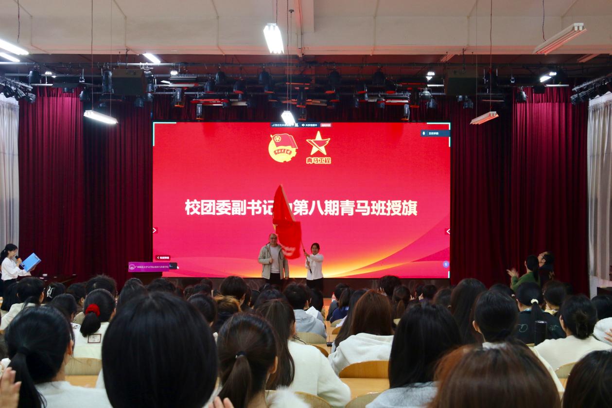 学校团委副书记韦斯门为学院第八期青马班授旗