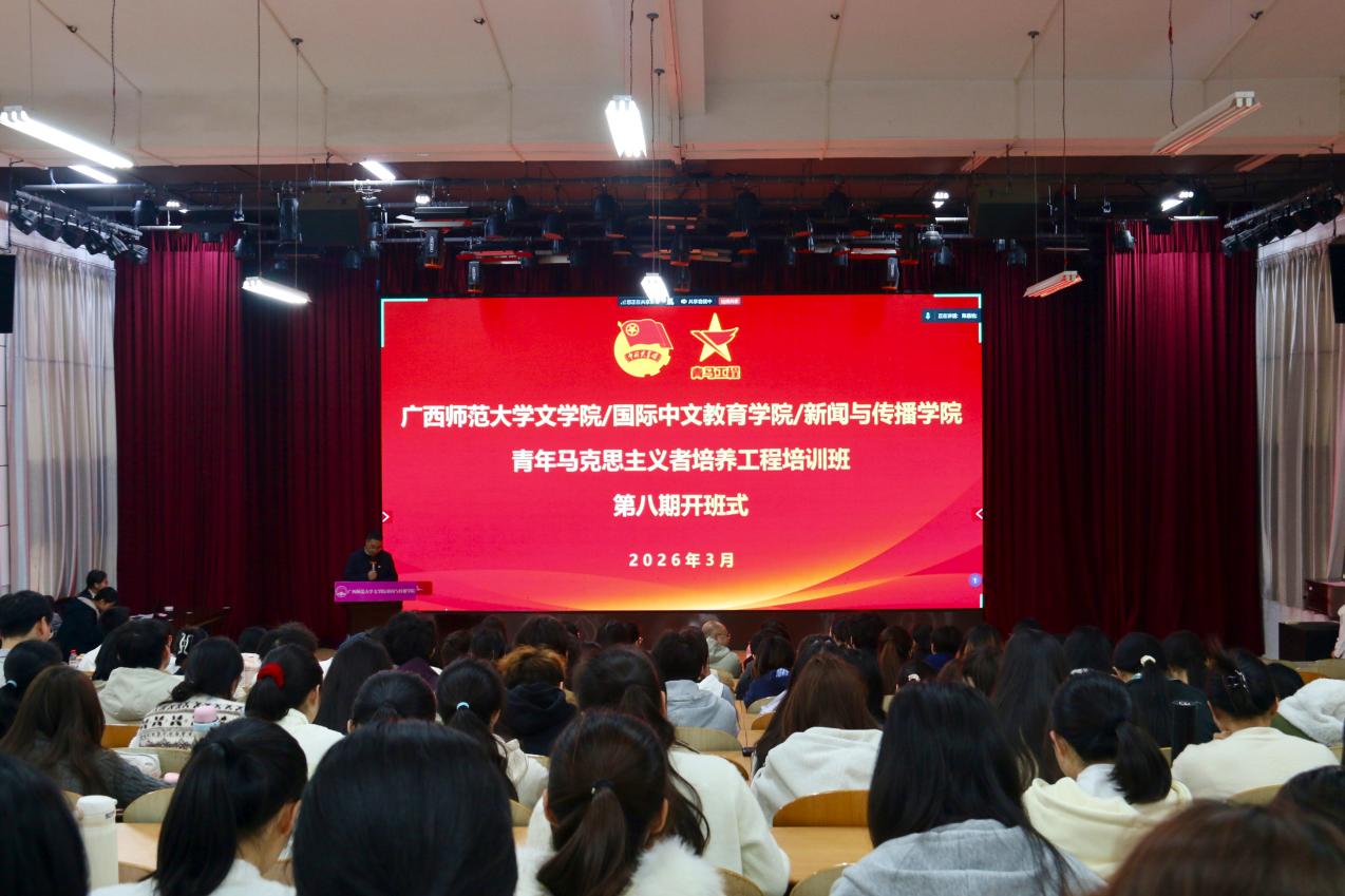 为深入贯彻落实习近平总书记关于青年工作的重要思想,培养新时代青年的马克思主义理论素养,引导青年学生进一步坚定理想信念。3月13日下午,学院第八期青年马克思主义者培养工程培训班(以下简称“青马班”)开班式在文二区119学术报告厅举行。校团委副书记韦斯门,学院党委相关负责人,学工办主任,学院团委相关负责人及第八期青马班全体学员参加开班式。