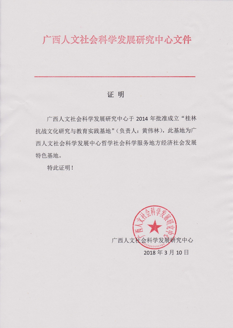 5.黄伟林主持:“桂林抗战文化研究与教育实践基地”,广西人文社会科学发展中心委托项目